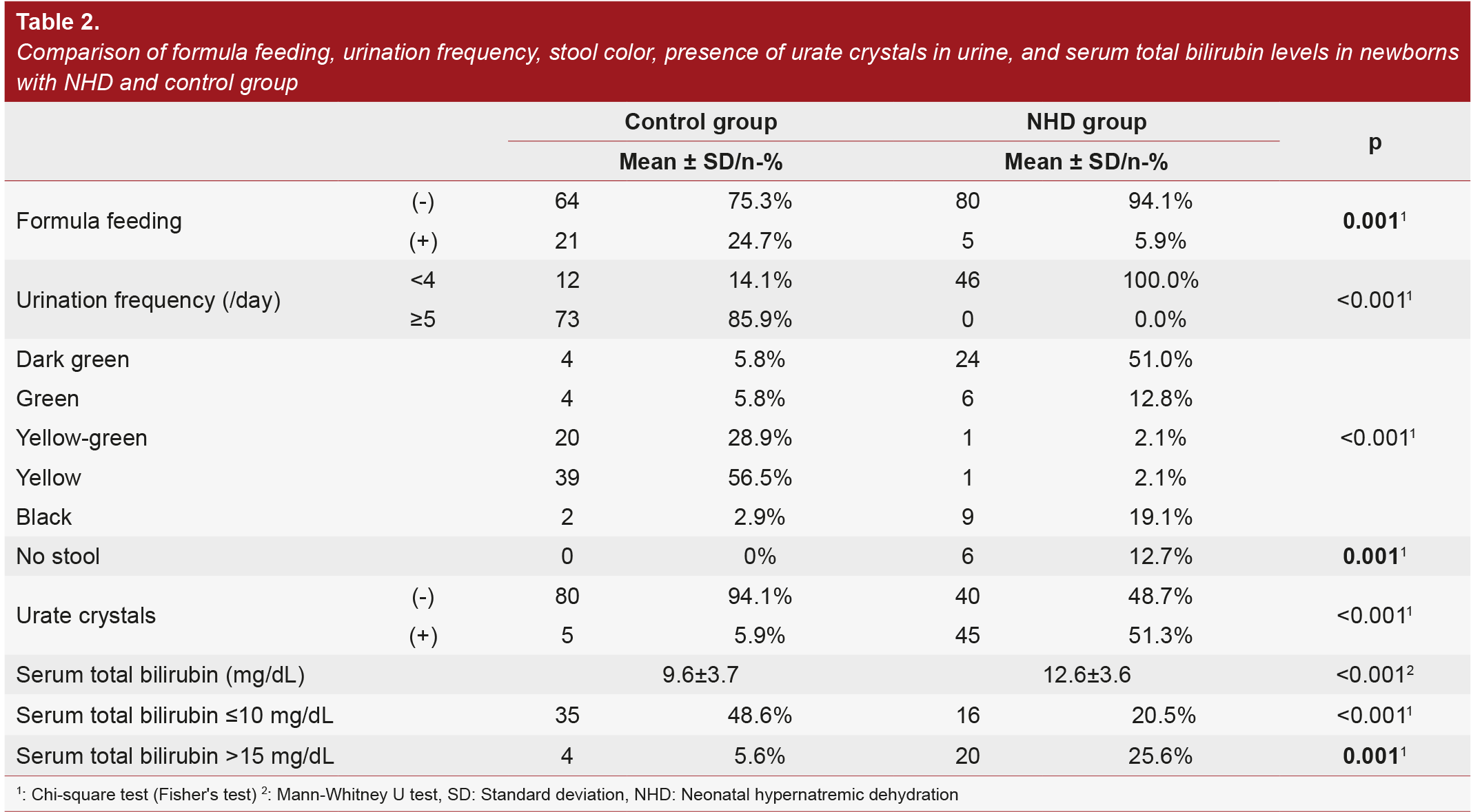 Neonatal hypernatremic dehydration (NHD), a consequence of inadequate fluid intake in newborns, can cause morbidity and mortality. This study aims to evaluate the signs, symptoms, and laboratory findings of newborns with NHD and define the approaches that may help to prevent its occurrence. Eighty-five newborns (gestational age ≥37 weeks) with ≥10% weight loss and diagnosed with NHD at their first post-discharge visit were retrospectively evaluated over a five-year period. The control group consisted of 85 healthy newborns with <10% weight loss. Among the NHD group, 54.1% were female, with a mean gestational age 38.1±1.1 weeks, mean birth weight 3359±369 g, mean weight loss of 11.83±1.28%, and a mean age of 3.91±0.9 days at presentation. All mothers exclusively breastfed their infants; however, formula supplementation was significantly more common in the control group (p=0.001). The most common presenting complaints were jaundice (54.1%) and pink-orange discoloration on diapers (25.8%). The presence of black or dark green stool, urination <5 times perday, and pink or orange-stained diapers was significantly higher in the NHD group (p<0.05). Hyperbilirubinemia was also more prevalent in the NHD group (p<0.05). Only 16.5% of the mothers in the NHD group suspected insufficient milk intake. None of the newborns developed severe hypernatremia or complications. Despite breastfeeding education prior to discharge, mothers lacked sufficient knowledge about monitoring feeding adequacy. Educating mothers about signs of insufficient fluid intake, such as jaundice, infrequent urination, pink/orange-stained diapers and dark stools, and closer post-discharge monitoring of at-risk newborns, can help prevent NHD.